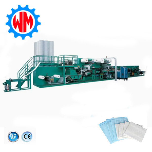 Accurate measurement and utilization of raw materials: The care mat production line is equipped with high-precision raw material measurement devices, and in each production process, it can accurately put all kinds of raw materials (such as non-woven fabrics, absorbent materials, hot melt adhesives, etc.). Through advanced sensors and control systems, according to product design requirements, the use of each raw material is precisely controlled to avoid the waste of raw materials caused by measurement errors. According to the actual calculation, compared with the traditional production line, the raw material loss rate can be reduced to 20%, and the production cost can be effectively controlled. At the same time, the waste generated in the production process is classified, recycled and reused, such as the reusable non-woven waste is treated for the production of small specifications of care pads or other non-critical parts of the product components, to further improve resource utilization.